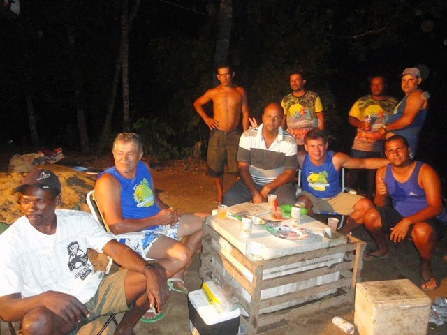Uma das melhores noite de todas as expedições. Sinceramente, muito boa mesmo! Ainda estava claro quando Sérgio, um dos integrantes da expedição chegou. Veio de carona com Bruno (sardão) e Lázaro, o prefeito de Teolândia e um dos grandes incentivadores do esporte, principalmente, da Expedição do Rio Preto. Lázaro foi encontrar o pessoal da Expedição Rio Maré, que está um acampamento à frente, ou seja, um dia à frente. Encontrou a turma da outra expedição e voltou novamente para nos encontrar. Com ele veio Cornélio, o presidente da Câmara de Vereadores, Alessandro, Mesack, Cabeção e depois chegaram outros.